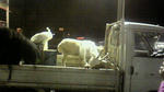 暗いからわからないかもですが、鳥と犬2匹と山羊2匹が軽トラの荷台に乗ってます。カラオケの帰りに遭遇して追跡した後、スーパーの駐車場で止まったので写メってきました。すご過ぎる!